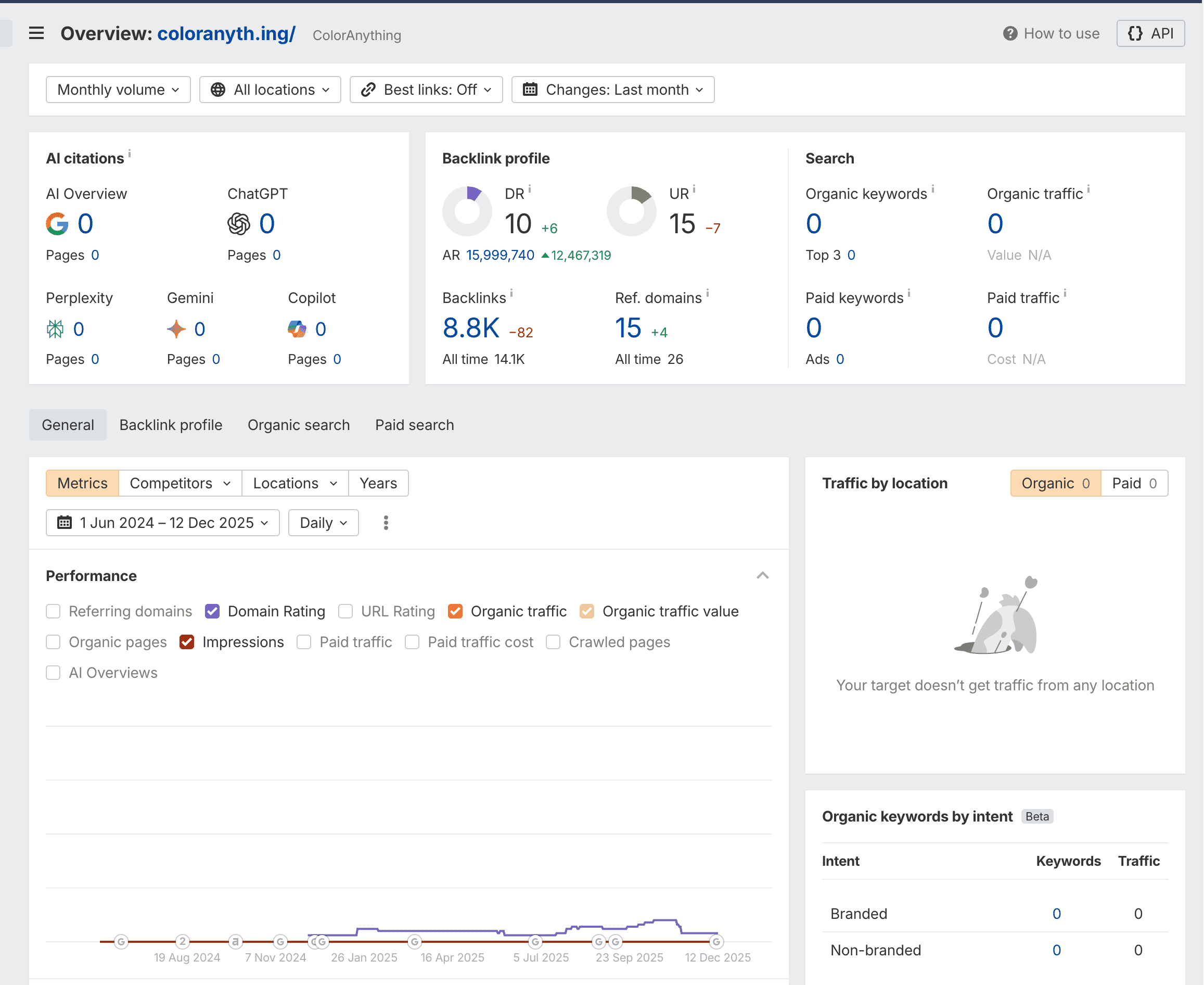 It gets almost no organic traffic. Here's traffic for the past 12 months: